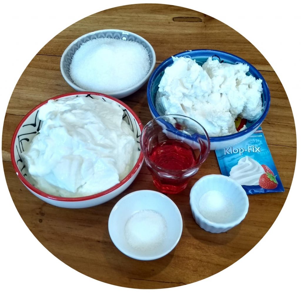 - Meng de suiker, slagroom-versteviger, vanillesuiker en zout bij elkaar. Voeg de ricotta en kwark toe en meng tot één geheel. Voeg de apart gehouden bessensaus toe en roer dit direct erdoorheen.