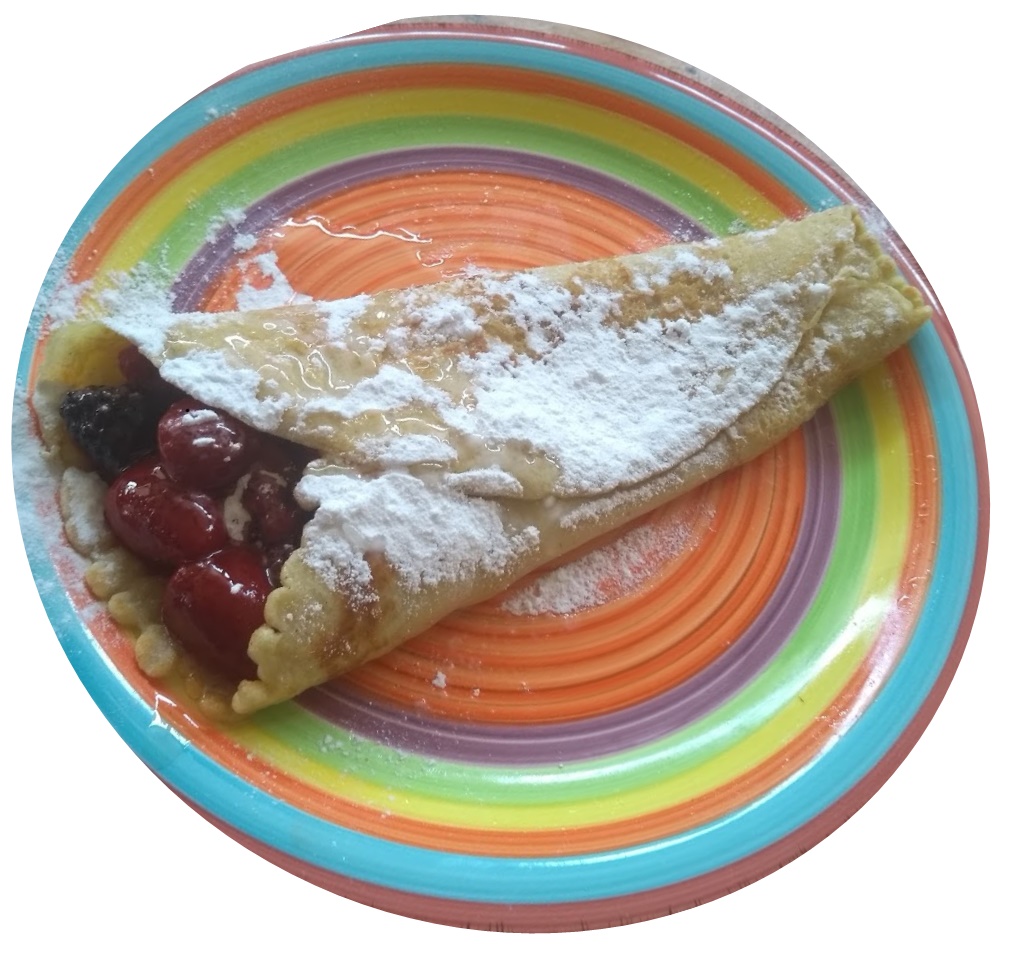 - Rol op elk bord een pannenkoek op in de vorm van een horentje.